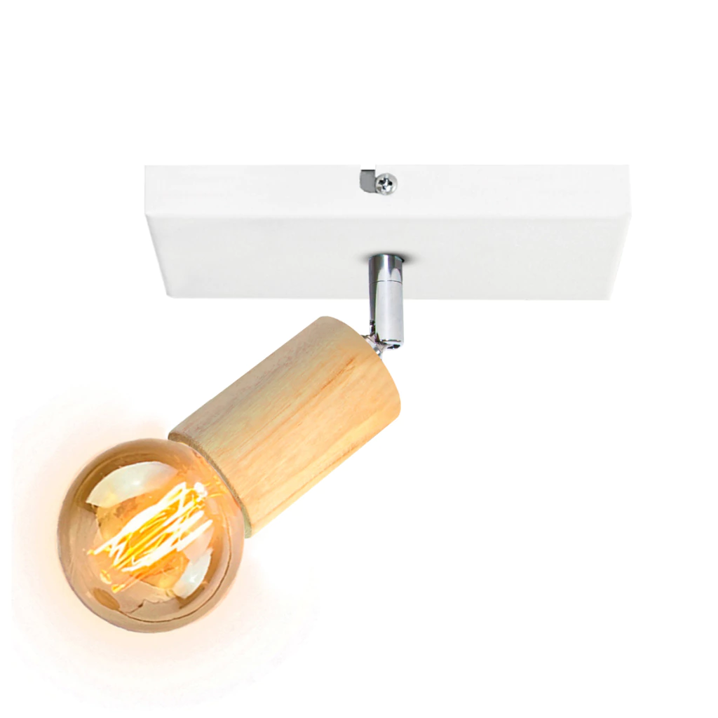 Aplique 1 Luz Spot Movil Madera Base Rectangular E27 Led