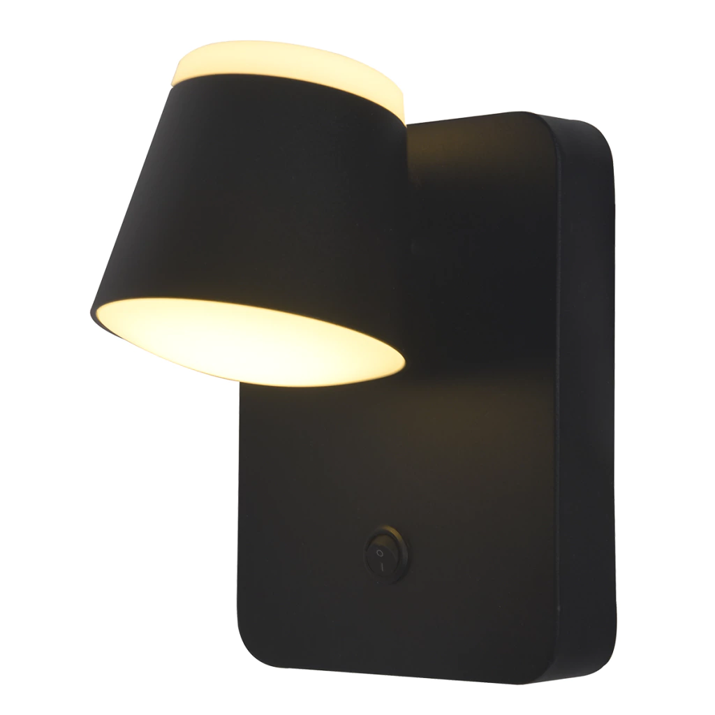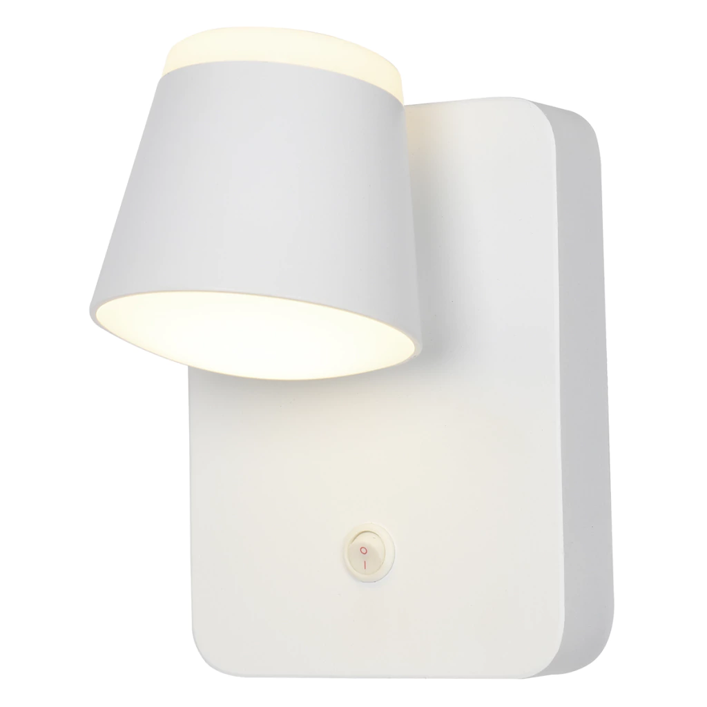 Lámpara aplique de diseño moderno y minimalista con interruptor y luz led integrado. Ideal para la iluminación del dormitorio y del cabecero de la cama.