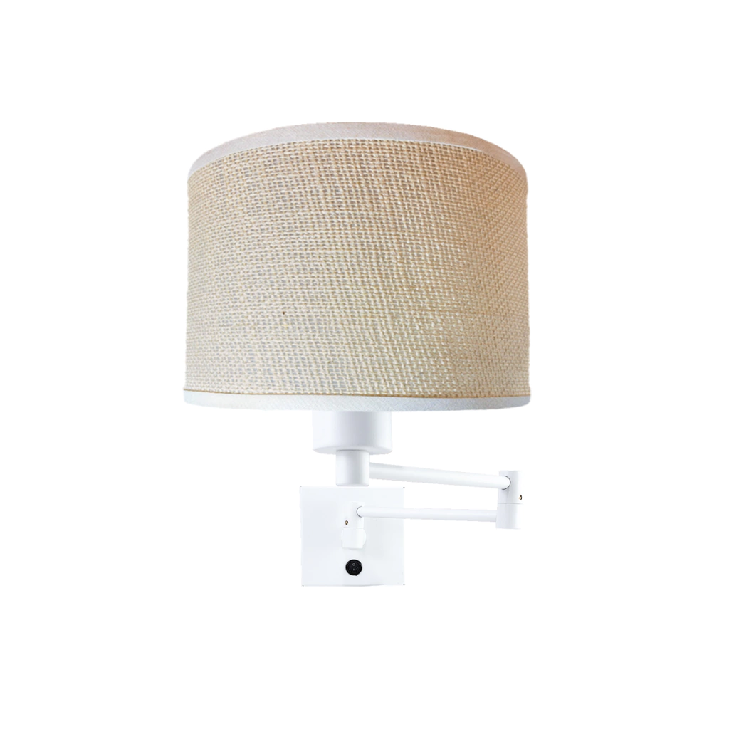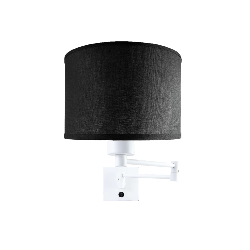 Lampara Aplique Velador Pared Hotel 1 Luz Pantalla Cilindrica Apto Led E27