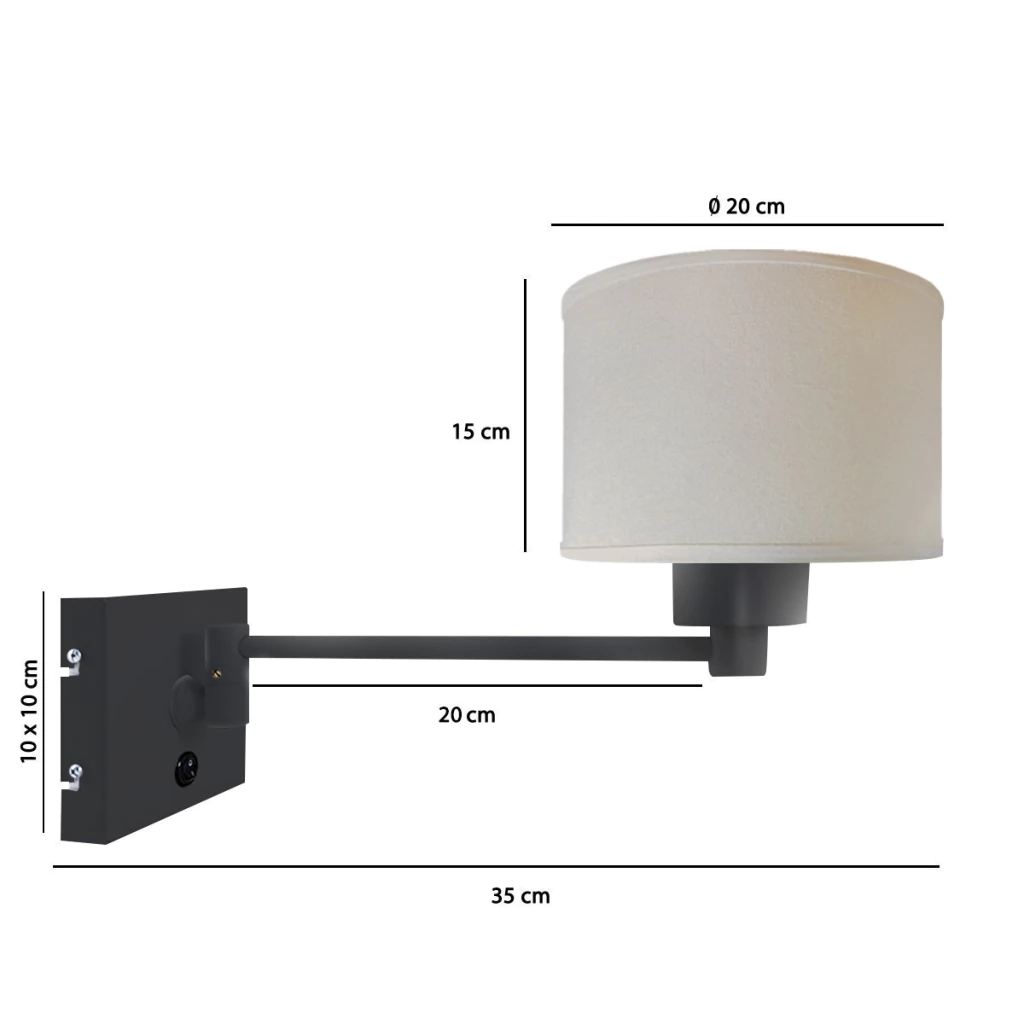 Lampara Aplique Velador Pared Hotel 1 Luz Pantalla Cilindrica Apto Led E27