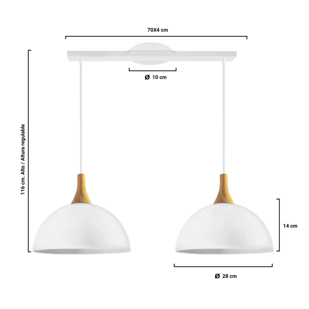 Lampara Colgante Milan 2 Luces 28cm Madera Led E27