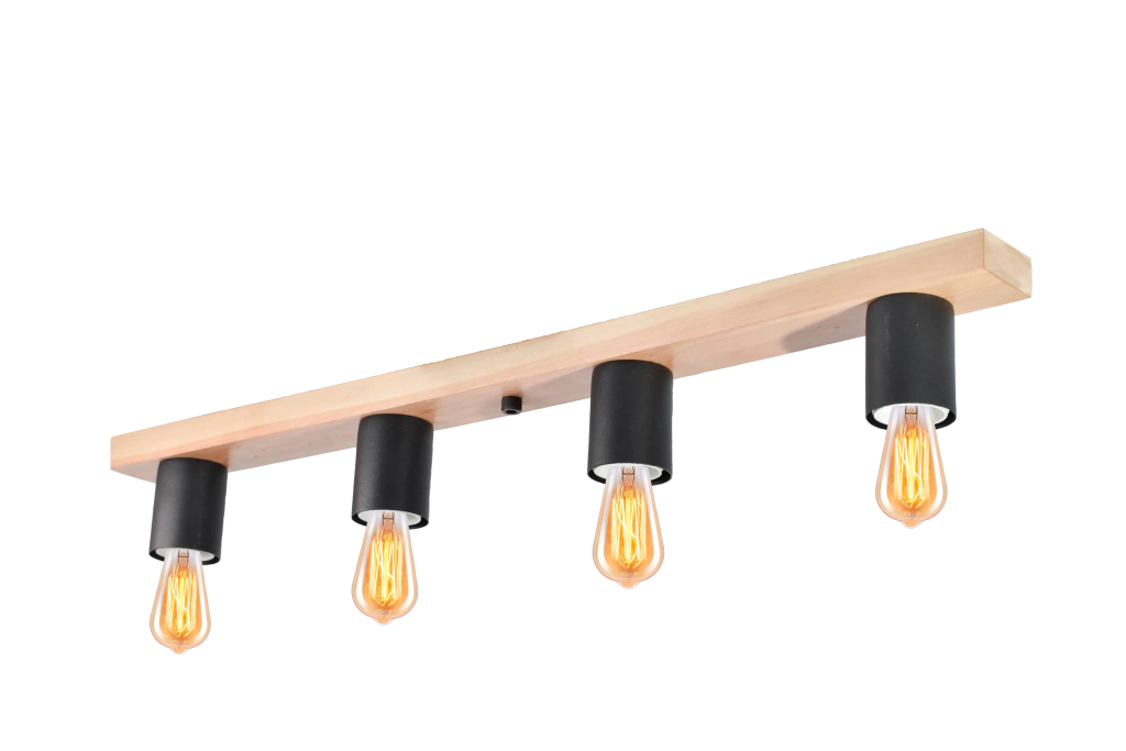 Lampara Plafon Iroko Barral Madera 4 Luces Led E27 Moderno