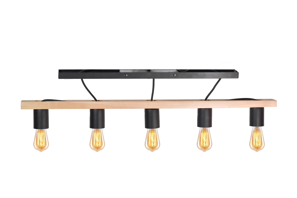 La Lámpara Colgante Iroko Barral Madera 5 Luces combina calidez y diseño contemporáneo en una pieza única. Su estructura de madera natural con detalles en negro mate aporta un estilo moderno y elegante, ideal para realzar comedores, livings o espacios de trabajo.